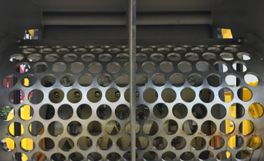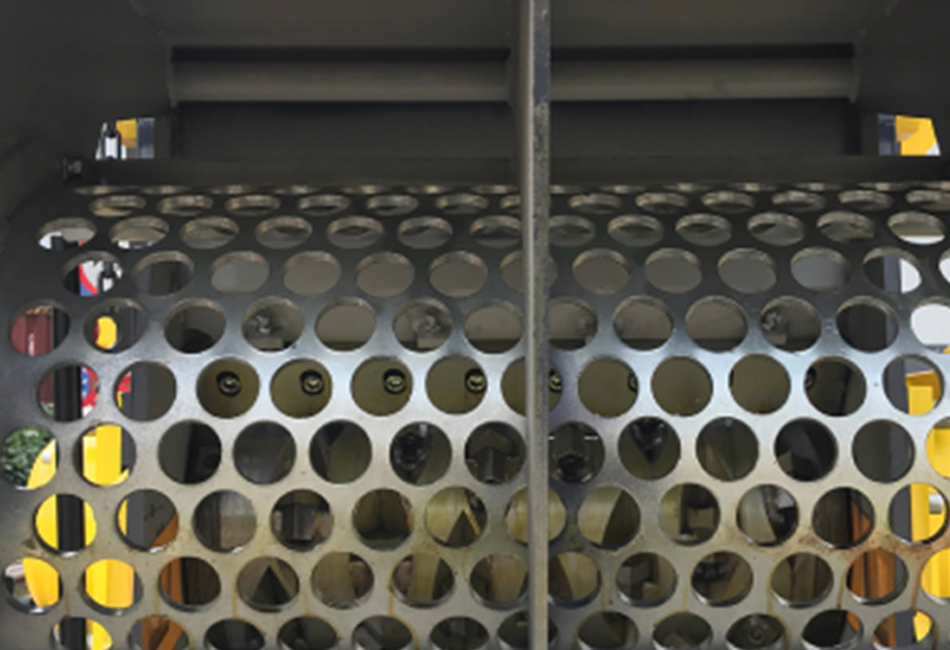 يتم طرد المواد الممزقة من خلال شاشة، مع تحديد حجم الجسيمات من خلال قطر فتحة الشاشة.