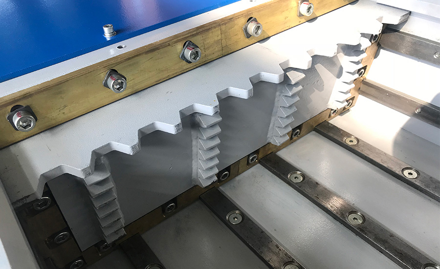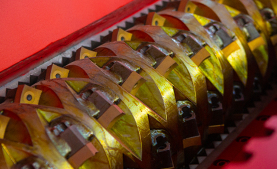 التفاعل بين الشفرات المتحركة والثابتة يمزق المواد.