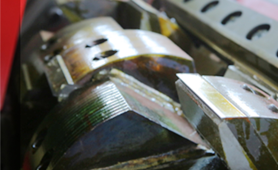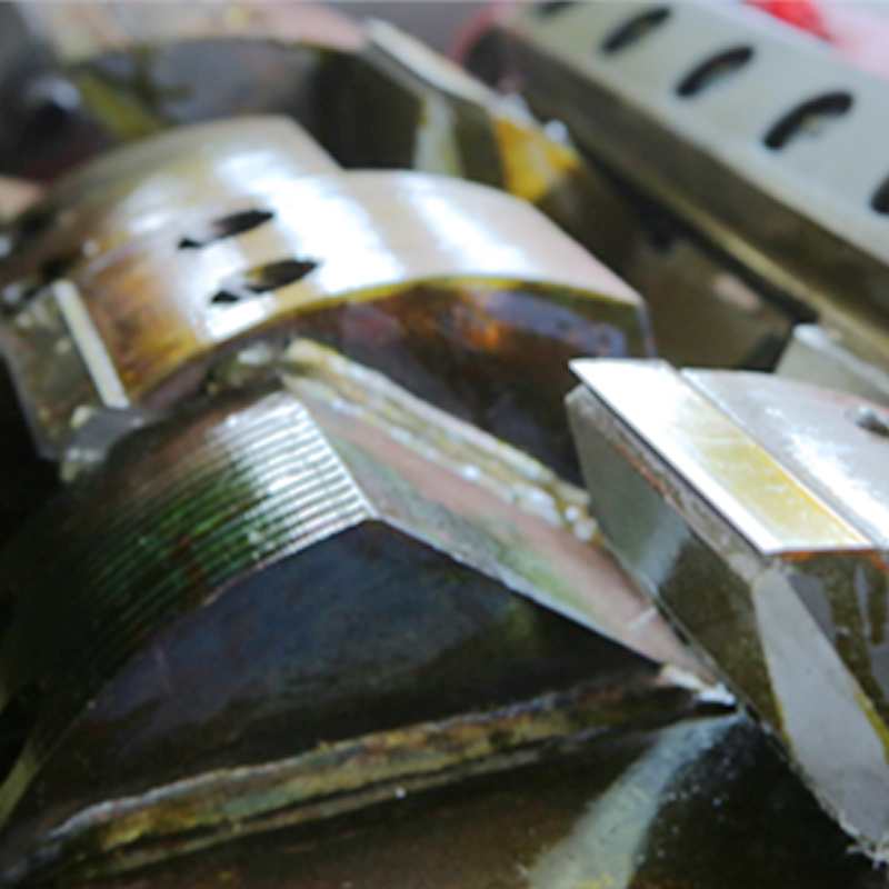 يتم سحق المواد من خلال عملية القص بين بكرات السكين عالية السرعة الدوارة داخليًا والشفرات الثابتة.
