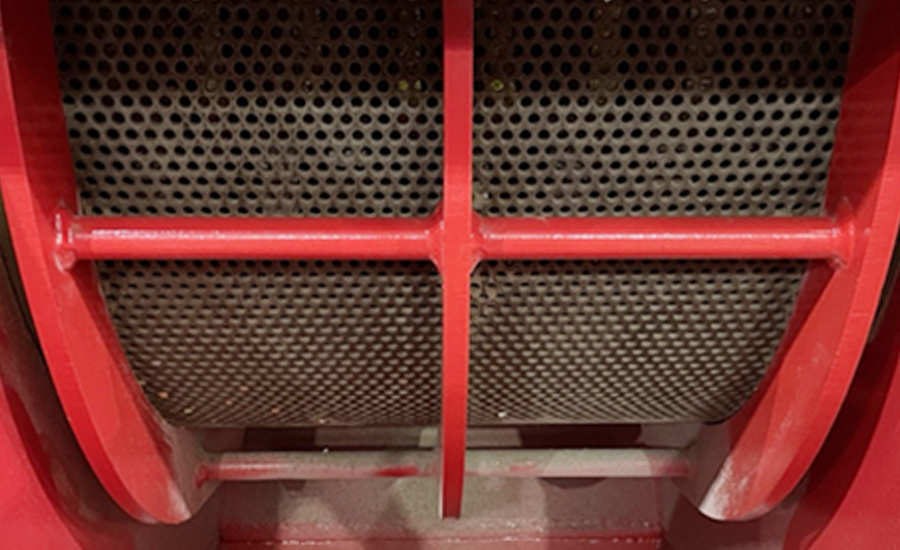 بمجرد أن تصبح المواد المكسرة أصغر من قطر فتحات الغربلة، فإنها تسقط في قادوس الاستقبال.