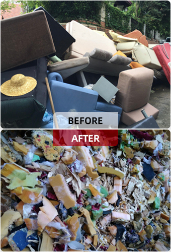 يمكنها التعامل مع المواد المعبأة في أكياس مثل المراتب القديمة والأكياس المنسوجة، بسمك يتراوح من 1 إلى 25 ملم.